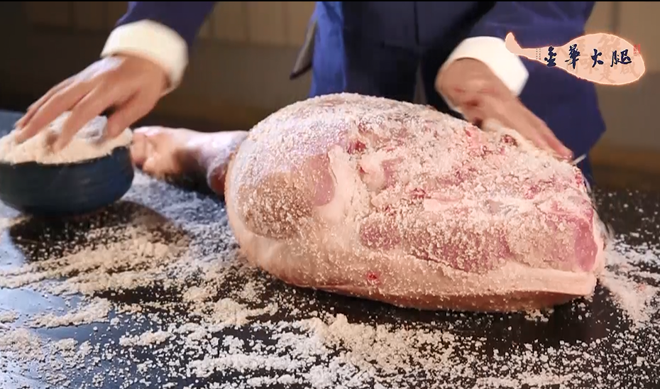 金華火腿質(zhì)量的好壞,關(guān)鍵在上鹽,精準(zhǔn)的上鹽量決定了金華火腿咸淡適中,光澤黃亮、口感鮮美。這是金華火腿加工技術(shù)的核心技術(shù)之一。一個(gè)月的腌制上鹽時(shí)間,鹽上多了,腿太咸就不會(huì)香;鹽上少了,腿要腐敗變質(zhì)。要把握得不咸不淡、恰如其分,方見功力。