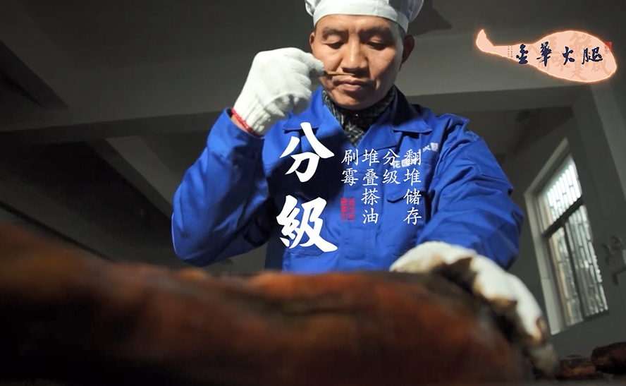 火腿經(jīng)過6個(gè)月以上的發(fā)酵后,進(jìn)入落架分級(jí)階段。這時(shí),全憑火腿技師手握一根毛竹簽,快速打簽聞香檢驗(yàn)分出火腿的質(zhì)量等級(jí),每只火腿都要進(jìn)行三簽三聞。“鼻功”好的技師,速度快,準(zhǔn)確率高;反之,則誤差大,容易造成質(zhì)量糾紛。這是火腿技師很重要的技能之一,而且需要多年的實(shí)踐才能練成。這種檢驗(yàn)方法,既不需要化學(xué)試劑也不需要實(shí)驗(yàn)設(shè)備,是一種非??茖W(xué)環(huán)保的減完肥方法,充分體現(xiàn)了我們火腿行業(yè)先輩的聰明智慧。